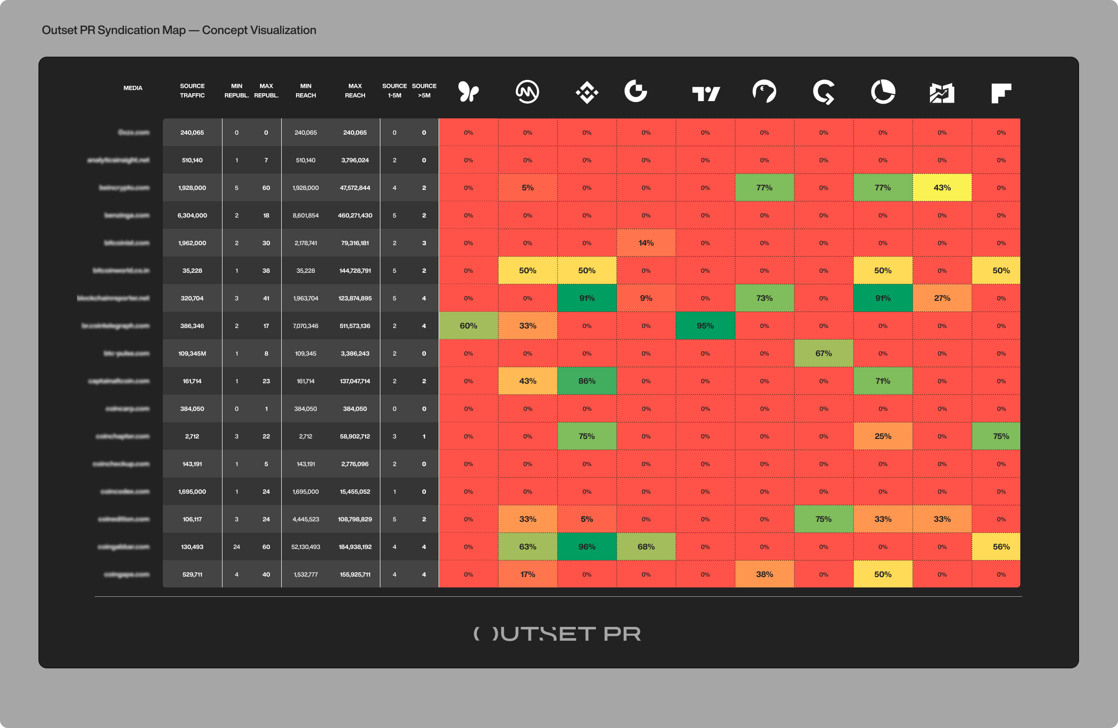 At Outset PR, we built the syndication map – a system that visualizes how one article can multiply across crypto-native spaces, exposing the real distribution power behind crypto publications. Co-written with our senior media analyst Maximilian Fondé, this article picks up where our previous piece left off – unpacking syndication not as PR trivia, but as a data goldmine for crypto brands.